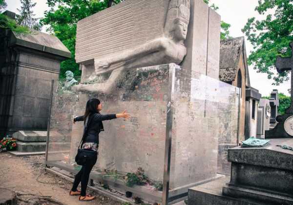 На фотографии можно увидеть, как выглядел памятник до того, как его обнесли оградой. Впрочем, говорят, что и теперь некоторые особо настойчивые влюбленные умудряются оставить ритуальный поцелуй на надгробии и сделать селфи: «Париж, могила Оскара Уайльда и мы»…
