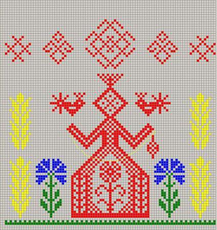 Схема оберега Макошь максимально проста, с ней справится любая начинающая мастерица, даже если она совсем недавно начала вышивать.