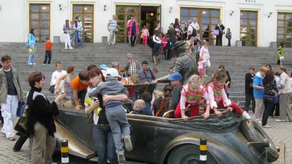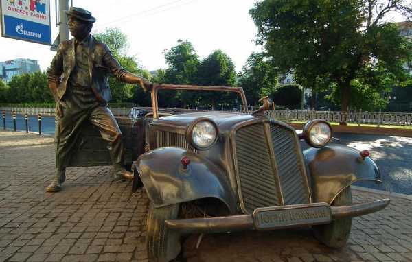 А посидеть хоть минутку хочется в таком кабриолете не только детям. Этот старинный автомобиль — к слову, собственность Ю.В. Никулина — участвовал в съемках «Кавказской пленницы». Автор памятника умышленно уменьшил его размеры, соблюдая при этом пропорции, чтобы фигура клоуна была доминантой композиции.